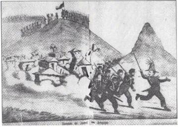 | Keywords: Guerra del pacÃfico 1879-1884 Caricatura 40.jpg en Patricio Ibarra Cifuentes escribe Con objeto de neutralizar las tropas y montoneras peruanas que operaban al interior del Perú poniendo en riesgo el establecimiento del gobierno del general peruano Miguel Iglesias las autoridades chilenas determinaron la necesidad de realizar una expedición militar sobre Arequipa y sus alrededores sede del autoproclamado gobierno del almirante Lizardo Montero En octubre de 1883 la expedición al mando del coronel José Velásquez acometió con la empresa y logró ocupar Arequipa hacia fines de mes El Padre Cobos publicó esta caricatura el dÃa 6 de octubre de 1883 en la cual se muestra a las fuerzas peruanas arequipeñas huyendo ante la sola presencia del General Pililo personaje idealizado representante del soldado chileno y sÃmil del roto vencedor de la batalla de Yungay en 1839 en esa oportunidad durante las campañas contra la Confederación Perú “ boliviana 1881 http //www tesis uchile cl/tesis/uchile/2009/ibarra_pa/html/index-frames html Caricaturas chilenas de la Guerra del PacÃfico 1879-1884 La presente monografÃa presenta un análisis e interpretación de 105 caricaturas publicadas en periódicos humorÃsticos chilenos inspiradas en las causas desarrollo y consecuencias de la Guerra del PacÃfico enfrentamiento armado que Chile llevó adelante contra la alianza formada por Perú y Bolivia durante los años 1879 y 1884 Divididos en seis categorÃas temáticas los grabados seleccionados muestran como los editores de los rotativos y sus dibujantes señalaron su particular punto de vista aportando con ello a la discusión pública emanada desde la prensa a propósito del conflicto del norte Asimismo se presenta un sucinto estudio de los diarios de sátira que vieron la luz mientras se llevaban a cabo las hostilidades caracterizándolos y ubicándolos a partir de la posición que ocuparon en el espectro polÃtico de la época http //www tesis uchile cl/tesis/uchile/2009/ibarra_pa/html/index-frames html http //www repositorio uchile cl/handle/2250/108555 Compiladas por Ibarra Cifuentes Patricio other versions PD-Art Chilean Caricatures in the War of the Pacific |