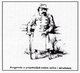 | Keywords: Guerra del pacífico 1879-1884 Caricatura 100.jpg es Patricio Ibarra Cifuentes escribió Grabado del Diógenes que muestra un veterano de la guerra que perdió ambas piernas afirmado de un bastón vestido de uniforme portando condecoraciones y en pose de retrato o fotografía La leyenda afirma que se encuentra asegurado de por vida contra afecciones a los pies tales como callos y sabañones Este dibujo vio la luz el 11 de junio de 1884 1879-1884 http //www tesis uchile cl/tesis/uchile/2009/ibarra_pa/html/TH 4 html Chilean magazines El Ferrocarrilito El Padre Cobos El Diablo José Peluca El Barbero El Corvo Padre Padilla Diógenes other versions PD-old-70-1923 Chilean Caricatures in the War of the Pacific |