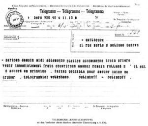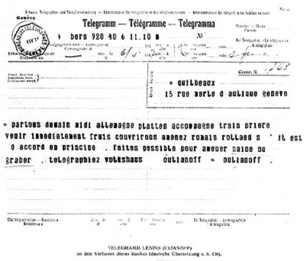 | Keywords: Guilbeaux155 pdf.jpg de Telegramm von Lenin an Henri Guilbeaux 6 April 1917 Siehe de Henri Guilbeaux <br>Text <br>partons demain midi allemagne platten accompagne train priere venir immediatement frais couvrirons amenez romain rolland s'il est d'accord en principe faites possible pour amener naine ou graber telegraphiez volkshaus oulianoff<br>Personen <br> de Charles Naine; de Ernest-Paul Graber; de Romain Rolland ru Пе евод текста телег аммы опубликован 408 Телег амма А Гильбо 6 ап еля // Полное соб ание сочинений / В И Ленин 5-е изд Издательство политической лите ату ы 1970 Т 51 С 429 <br> аписано 5 ап еля 1917 г <br> Послано из Бе на в Стокгольм<br> Впе вые напечатано в 1924 г <br> в жу нале<br> «П олета ская Революция» 1 Печатается по тексту<br> телег афного бланка<br> Пе евод с немецкого 408<br> ТЕЛЕГРА А А ГИЛЬБО Выезжаем завт а в полдень в Ге манию Платтен соп овождает поезд п осьба п ибыть немедленно асходы пок оем П ивезите Ромен Роллана если он в п инципе согласен Сделайте все возможное чтобы п ивезти с собой эна или Г абе а Телег афи уйте а одный Дом Ульянову <br> Ульянов 2014-05-06 02 08 41 Henri Guilbeaux Wladimir Iljitsch Lenin Ein treues Bild seines Wesens bertr ins Dt u Mitw v Rudolf Leonhard Berlin Verlag Die Schmiede 1923 nach S 48 Henri Guilbeaux PD-old-70 Uploaded with UploadWizard Henri Guilbeaux Vladimir Lenin Fritz Platten Romain Rolland Telegrams Leniniana philately |
