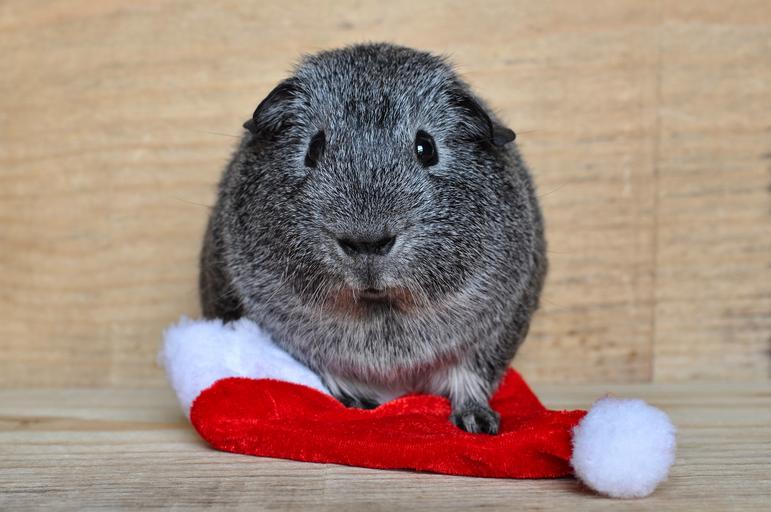 Keywords: guinea pig smooth hair black and white agouti santa hat