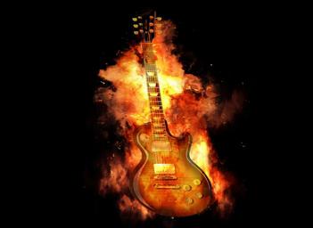Keywords: guitar fire flame hot rock brand music burning instrument