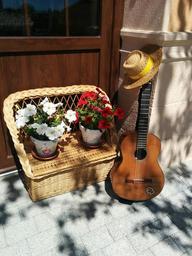 Keywords: guitar flowers pots hat