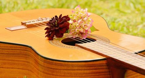 Keywords: guitar musical instrument music stringed instrument instrument acoustics wooden guitar floral greeting
