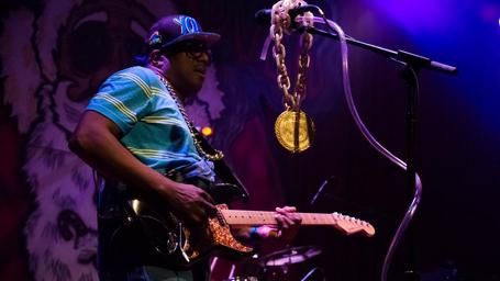 Keywords: guitar player guitar solo player music rock musical instrument band musician electric guitarist sound play black man concert artist playing performance fret strings rocker holding gold chain gold