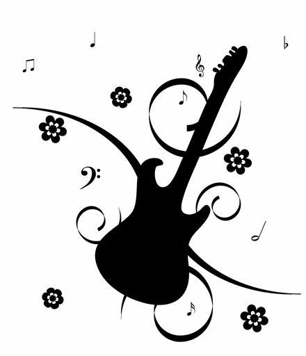 Keywords: guitar electric guitar black silhouette musical notes notes flowers floral funky retro fun shape musical instrument art design illustration