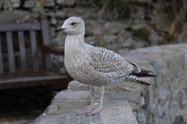 Keywords: gull juvenile wall bench black grey nature allee walls greyish dark