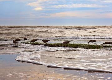Keywords: gulls birds north sea dunes landscape holland wadden sea coast sky sun beach nature water light clouds sea animals blue mood