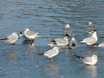 Keywords: gulls birds waser animals pushed together swim