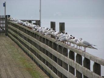 Keywords: gulls fence ammersee web boardwalk birds trueb grey pier jetty create water wood