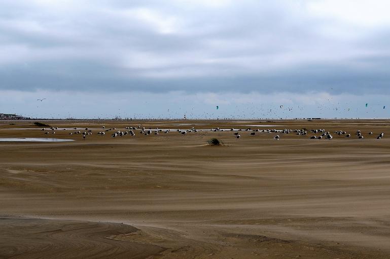 Keywords: gulls sea birds borkum wadden sea ebb beach cloudiness