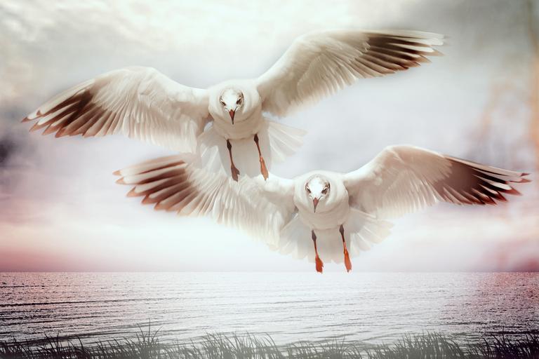 Keywords: gulls water bird bird flight fly water lake sea nature