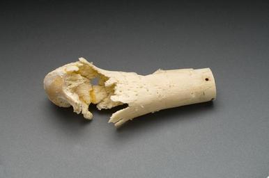 | Keywords: Gunshot femur2.jpg Human distal femur shot with a 55-grain fully jacketed M193 ball round fired from a 5 56 mm M16 A1 rifle Leg bone from the Ragsdale Gunshot Wound Study 1984 National Museum of Health and Medicine Armed Forces Institute of Pathology Washington D C From exhibition Visible Proofs Forensic Views of the Body U S National Library of Medicine 8600 Rockville Pike Bethesda MD 20894 2006-02-16 National Institutes of Health Health Human Services PD-USGov-NIH PD-USGov Gunshot wounds Femur |