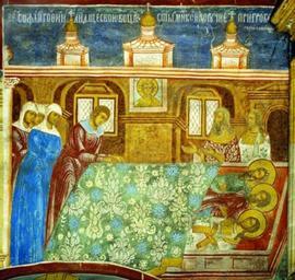 | Keywords: Gury, Samon and Aviv 01.jpg ru Готский воин п иносит клятву пе ед мощами святых Гу ия Самона и Авива Ф агмент осписи п идела святых Гу ия Самона и авива ц п о Илии в Я ославле Посл четв XVII в XVIII c http //www pravenc ru/text/168390 html anonimus PD-Art Gurias Samonas and Abibus |