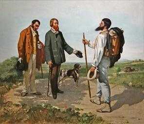 | Keywords: Gustave Courbet (Bohèmes, Grand Palais) (8164920037).jpg Artwork Creator Gustave Courbet fr La rencontre de Die Begegnung 1854 Oil on canvas Size cm 132 150 Institution Musée Fabre Montpellier Hilaire Michel; Amic Sylvain 2004 Bonjour Monsieur Courbet the Bruyas collection from the Musée Fabre Montpellier Réunion des musées nationaux ISBN 978-0-300-10523-0 http //museefabre montpellier-agglo com/pdf php/ filePath var/storage/original/application/695abfa327a95f27b6fe82b58baf3f4f La rencontre Musée Fabre object history exhibition history credit line Don d'Alfred Bruyas 1868 This painting is also known as Bonjour Monsieur Courbet accession number Inv 168 1 23 Source http //www flickr com/photos/dalbera/8164920037/ Gustave Courbet Bohèmes Grand Palais Photographer http //www flickr com/people/72746018 N00 Jean-Pierre Dalbéra Date of the photograph 2012 11 07 18 49 Taken at the exhibition Bohèmes au Grand Palais Galeries nationales http //www grandpalais fr/grandformat/exposition/bohemes/ www grandpalais fr/grandformat/exposition/bohemes/ 50px 48 865935 2 31238 source Flickr PD-old-100-1923 PD-1923 Cc-by-2 0 File Upload Bot Magnus Manske 2013-02-15 Oil paintings Paintings of men of France Realist paintings of men Paintings by Gustave Courbet in the Musée Fabre Alfred Bruyas 1850s fashion Walking in art 1854 paintings Self-portraits by Gustave Courbet Self-portraits in group People with staffs in art Exhibitions at the Grand Palais Bohemes Photographs by Jean-Pierre Dalbéra Files uploaded by Russavia |