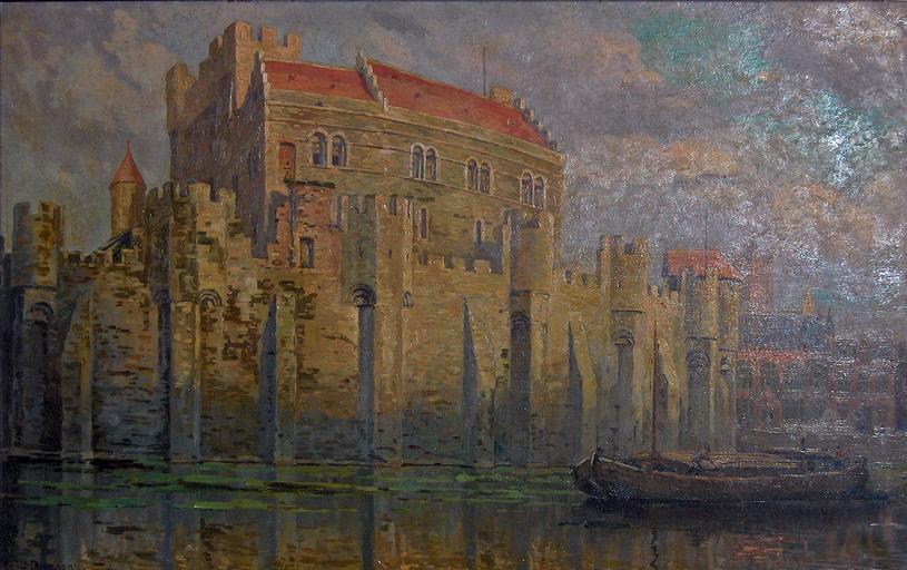 | Keywords: Gustave Dierkens 001.JPG en The Gravensteen in Ghent oil painting on canvas 73 x 116 cm by Gustave Dierkens 1878-1940 ; private collection own - photo made at an art auction in Belgium Georges Jansoone JoJan - artwork by Gustave Dierkens 2010-07-11 PD-Old cc-by-3 0 Gustave Dierkens |