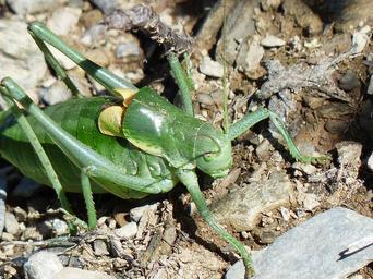 Keywords: gut insect grasshopper polysarcus denticauda orphania denticauda katydid sickle insect phaneropterinae green yellow saddle shaped neck shield neck shield grim view eyes probe