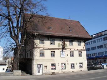 | Keywords: Gutenbergstrasse 7, Kaufbeuren.jpg Gasthof zum Stachus Ehemaliges Färberhaus dann Gasthof zum Stachus dreigeschossige Anlage Obergeschoß Fachwerk weit überstehendes Satteldach 1785; ehemals mit rückwärtigem in den 1920er Jahren erweitertem Saalanbau des späten 19 Jahrhunderts Saalanbau wurde 2011 geschleift own 2012-03-03 11 20 15 Ordercrazy User Ordercrazy/Credits Gutenbergstraße 7 Kaufbeuren | ||||