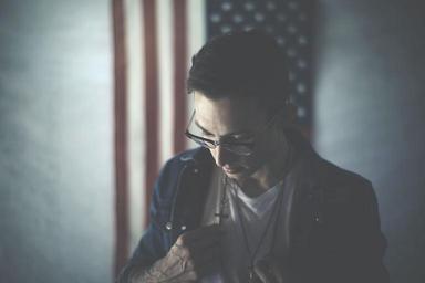Keywords: guy man eyeglasses cross chains fashion model american flag people