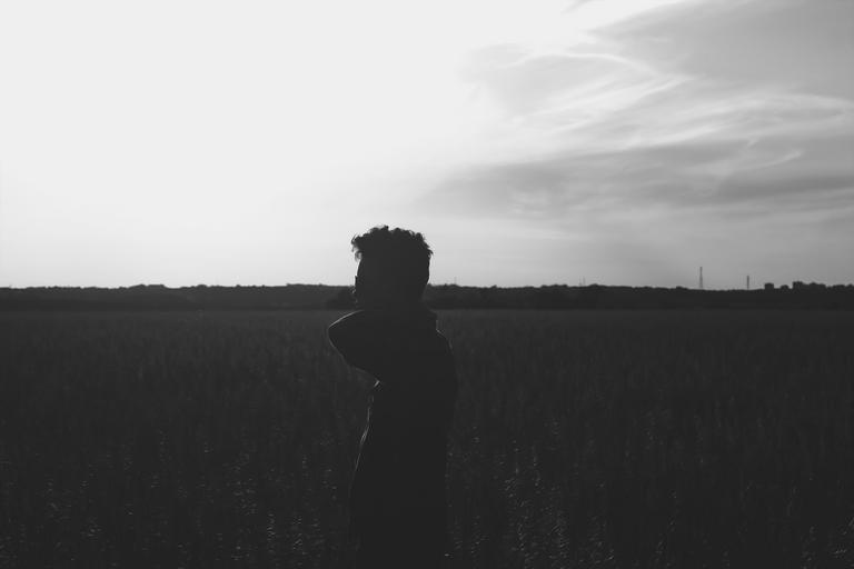 Keywords: guy man field rural countryside nature landscape people sky black and white
