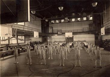 | Keywords: gym gym class 1940's fitness exercise people athletic class healthy fit training young workout lifestyle group women body female sport active exercising weight person sportswear adult man loss caucasian happy indoors club woman strength equipment wellness men together |
