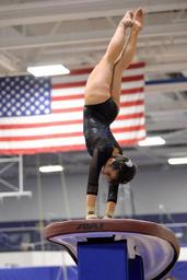 Keywords: gymnastics female performance vault exercise somersault fitness woman strength poise athlete liz copan college competition