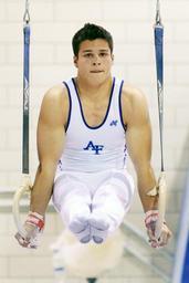 Keywords: gymnastics male performance rings exercise pose fitness man strength poise athlete concentration power competition