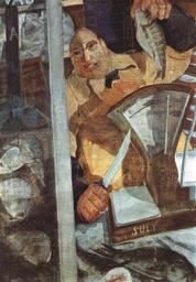 | Keywords: Gyula Derkovits, fish seller, 1930.jpg Artwork creator Gyula Derkovits 1930 LangSwitch Oil and gold-silver powder paint on paper Olaj arany-ezüst porfesték papíron size cm 80 35 5 Institution Hungarian National Gallery accession number object history credit line Fine Arts in Hungary http //www hung-art hu/kep/d/derkovit/muvek/2/derko202 jpg http //www hung-art hu/frames-e html /english/d/derkovit/muvek/2/index html PD-old-70 Paintings by Gyula Derkovits in the Hungarian National Gallery Paintings of fish Merchants in art 1930 paintings in Hungary |