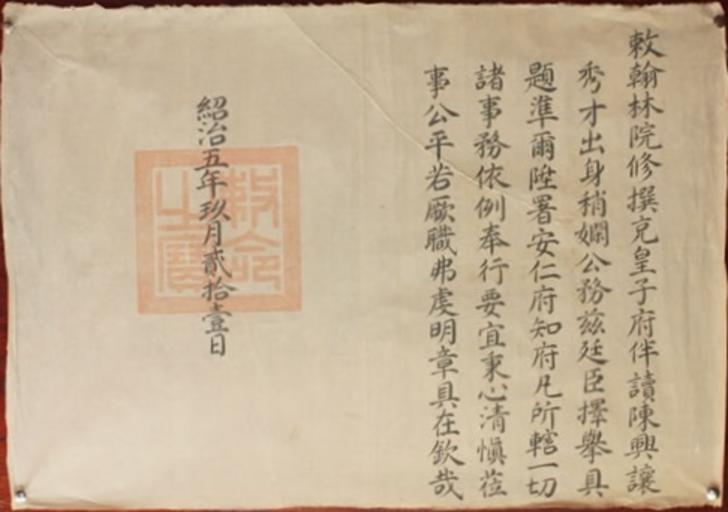 Keywords: H6c.jpg vi Văn bản vua Thiệu Trị bổ nhiệm ông Trần Hưng Nhượng làm tri phủ An Nhơn 1845 http //www baomoi com/Tag/minh-m E1 BA A1ng/p/3 epi author PD-Art Uploaded with UploadWizard Nguyễn dynasty