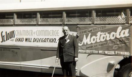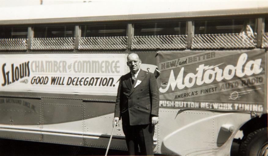 | Keywords: h. murray gibson special collection photo st. louis missouri hmurraygibsonspecialcollectionphotostlouismissouri â greyhound lines âgreyhoundlines inc motorola greyhound greyhound bus greyhoundbus bus Catalog #: 09_01235 Title: H. Murray Gibson Special Collection Photo St. Louis Missouri Additional Information: Man identified as 'Jean DeFlandre' Terminal Manager of Greyhound Lines St. Louis, Missouri. Handwritten inscription ""taken before start of St. Louis Chamber of Commerce Good Will Charter"", H. Murray Gibson was a bus driver for the Greyhound bus company. He was also an aviation enthusiast who took flying lessons throughout the 1930s. Corporation Name: Greyhound Lines, Inc Tags: H. Murray Gibson Special Collection Photo St. Louis Missouri, Greyhound Lines, Inc Repository: San Diego Air and Space Museum Archive Catalog #: 09_01235 Title: H. Murray Gibson Special Collection Photo St. Louis Missouri Additional Information: Man identified as 'Jean DeFlandre' Terminal Manager of Greyhound Lines St. Louis, Missouri. Handwritten inscription ""taken before start of St. Louis Chamber of Commerce Good Will Charter"", H. Murray Gibson was a bus driver for the Greyhound bus company. He was also an aviation enthusiast who took flying lessons throughout the 1930s. Corporation Name: Greyhound Lines, Inc Tags: H. Murray Gibson Special Collection Photo St. Louis Missouri, Greyhound Lines, Inc Repository: San Diego Air and Space Museum Archive |
