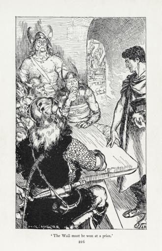 | Keywords: H. R. Millar - Rudyard Kipling - Puck of Pook's Hill 15.png H R Millar's 15th illustration to the original edition of Rudyard Kipling's Puck of Pook's Hill from the chapter The Winged Hats 'The Wall must be won at a price' 1906 Harold Robert Millar Puck of Pook's Hill First reprint October 1906 London Macmillan and Co Limited 1906 Harold Robert Millar 1869-1940 Restoration by Adam Cuerden PD-old-70-1923 For other images from the book see Category Puck of Pook's Hill File H R Millar - Rudyard Kipling - Puck of Pook's Hill 15 jpg - Restoration JPEG File H R Millar - Rudyard Kipling - Puck of Pook's Hill 15 png - Restoration PNG File Original Scan - H R Millar - Rudyard Kipling - Puck of Pook's Hill 15 tif - Original scan TIFF DEFAULTSORT Puck of Pook's Hill 015P Puck of Pook's Hill Adam Cuerden's restorations |