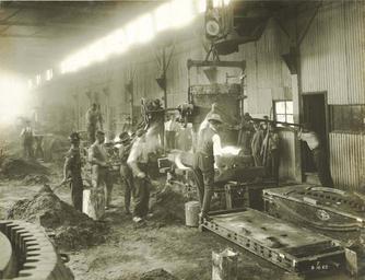 | Keywords: archives state records nsw staterecordsnsw newsouthwales blackandwhite people steel works steelworks sydney alexandria workers forge oh&s ohs monochrome black and white Pouring first steel casting at Hadfields Works - Alexandria (from the Sydney Harbour Bridge photo albums) Dated: 3/12/1925 Digital ID: 12685_a007_a00704_8726000042r Rights: www.records.nsw.gov.au/about-us/rights-and-permissions We'd love to hear from you if you use our photos. Many other photos in our collection are available to view and browse on our website using Photo Investigator. Pouring first steel casting at Hadfields Works - Alexandria (from the Sydney Harbour Bridge photo albums) Dated: 3/12/1925 Digital ID: 12685_a007_a00704_8726000042r Rights: www.records.nsw.gov.au/about-us/rights-and-permissions We'd love to hear from you if you use our photos. Many other photos in our collection are available to view and browse on our website using Photo Investigator. |