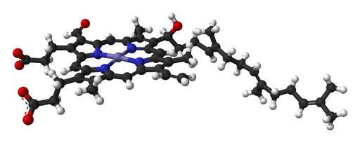 | Keywords: Haem-a-in-cyctochrome-c-oxidase-PDB-1OCR-3D-balls-B.png Ball-and-stick model of the haem a molecule as found in the crystal structure of bovine heart cytochrome c oxidase Histidine residues coordinating the iron atom have been omitted for clarity Colour code Carbon C grey-black Hydrogen H white Nitrogen N blue Oxygen O red Iron Fe blue-grey Structure by X-ray crystallography from http //www rcsb org/pdb/explore/explore do pdbId 1OCR PDB 1OCR http //dx doi org/10 1126/science 280 5370 1723 Science 1998 280 1723-1729 Image generated in http //accelrys com/products/discovery-studio/visualization/discovery-studio-visualizer html Accelrys DS Visualizer Own 2011-01-30 Ben Mills Benjah-bmm27 Images by Ben Mills Haem a |