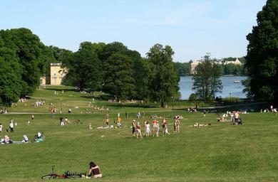 | Keywords: Haga lawn.jpg The lawn in front of the Copper Tents at the Haga Park in Stockholm Sweden Part of the Albano campus of Stockholm University can be seen in the background on the other side of Brunnsviken Own 2007-06-06 Peter Isotalo Hagaparken |