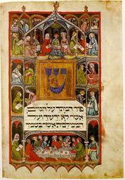 | Keywords: Haggadah 14th cent.jpg Assessments 1 ארכיון 12 הגדה מהמאה ה-14 15th century German illuminated Haggadah for Passover The text on this page begins Psalm 79 verse 6 PD-old-100 Illuminated Haggadot 15th-century illuminated manuscripts Psalm 79 0976 Artworks missing infobox template ש Haggadah 15th cent.jpg Darmstädter Haggadah en An early 15th century manuscript copied around 1430 in square Ashkenazic script Its decorations contain initial word panels a few fully framed borders and two full-page miniatures The full-page miniature is the adaptation of medieval Christian iconography for the purposes of illustrating the importance of study and discussion in the celebration of the Passover Seder Every figure men and women is holding a book presumably a Haggadah and is involved in discussing the Exodus from Egypt The text on this page begins Psalm 79 verse 6 Original Darmstadt Hessische Landes-und Hochschulbibliotek הגדת דרמשטט גרמניה המאה ה-15 circa 1430 Universitäts- und Landesbibliothek Darmstadt האוניברסיטה והספרייה ה אומית דרשמטט http //members ngfp org/Courses/Shinan/haggadah3 Assessments 1 ארכיון 12 הגדה מהמאה ה-14 PD-old-100 Illuminated Haggadot 15th-century illuminated manuscripts Psalm 79 0976 ש User Geagea/Template to add |