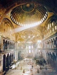 | Keywords: ayasofya 537 hagia sophia hagiasophia bizans i̇mparatoru bizansimparatoru byzantine emperor byzantineemperor i. justinianos ijustinianos i. jüstinyen ijüstinyen miletli i̇sidoros miletliisidoros aydınlı anthemios aydınlıanthemios milet tralles bizans byzantine bizans kilisesi bizanskilisesi byzantine church byzantinechurch bazilika basilica nika ayaklanması nikaayaklanması nika revolt nikarevolt konstantin constantine constantinople mimar sinan mimarsinan architect sinan architectsinan gaspare fossati gasparefossati fossati sütun column kubbe dome mozaik mosaic fetih conquest kilise church cami mosque müze museum mimari architecture i̇stanbul istanbul salt araştırma saltaraştırma salt research saltresearch salt online saltonline naos hall www.archives.saltresearch.org/R/-?func=dbin-jump-full&amp... “Kutsal Bilgelik” anlamına gelen Ayasofya’nın yerinde ilk olarak, 360 yılında inşa edilmiş olan “Megale Ekklesia” [Büyük Kilise] adlı kilise yer alıyordu. 404’te çıkan ayaklanma sonucu yakılan yapının yerine 415’te, İmparator II. Theodosius tarafından, “Sophia” adıyla anılan bir kilise yaptırıldı. Bu yapının da 532’de başlayan Nika ayaklanmasında yanması üzerine, Bizans İmparatoru I. Justinianos’un emriyle, mimar Miletoslu (Milet) İsidoros ve mimar Trallesli (Aydın) Anthemios tarafından bugünkü Ayasofya inşa edildi. Büyük bir alana yayılan ve geniş bir kubbe örtüsüne sahip olan yapının inşası 537’de tamamlandı. Yaklaşık 1000 yıl boyunca Bizans’ın en büyük kilisesi unvanıyla varlığını sürdüren yapı, İstanbul’un fethiyle camiye çevrildi. Farklı dönemlerde yapıya minareler eklendi, mozaikler badanayla kapatıldı. Mimar Sinan’ın yaptığı destek payandalarıyla güçlendirilen Ayasofya, Sultan Abdülmecid döneminde, 1847-1849 yıllarında mimar Gaspare Fossati tarafından kapsamlı bir onarımdan geçirildi. 1935’te ise Atatürk’ün emri ve Bakanlar Kurulu’nun kararıyla müze olarak ziyarete açıldı. Ayasofya Müzesi, iç mekân SALT Araştırma - Harika-Kemali Söylemezoğlu Arşivi www.archives.saltresearch.org/R/-?func=dbin-jump-full&amp... “Kutsal Bilgelik” anlamına gelen Ayasofya’nın yerinde ilk olarak, 360 yılında inşa edilmiş olan “Megale Ekklesia” [Büyük Kilise] adlı kilise yer alıyordu. 404’te çıkan ayaklanma sonucu yakılan yapının yerine 415’te, İmparator II. Theodosius tarafından, “Sophia” adıyla anılan bir kilise yaptırıldı. Bu yapının da 532’de başlayan Nika ayaklanmasında yanması üzerine, Bizans İmparatoru I. Justinianos’un emriyle, mimar Miletoslu (Milet) İsidoros ve mimar Trallesli (Aydın) Anthemios tarafından bugünkü Ayasofya inşa edildi. Büyük bir alana yayılan ve geniş bir kubbe örtüsüne sahip olan yapının inşası 537’de tamamlandı. Yaklaşık 1000 yıl boyunca Bizans’ın en büyük kilisesi unvanıyla varlığını sürdüren yapı, İstanbul’un fethiyle camiye çevrildi. Farklı dönemlerde yapıya minareler eklendi, mozaikler badanayla kapatıldı. Mimar Sinan’ın yaptığı destek payandalarıyla güçlendirilen Ayasofya, Sultan Abdülmecid döneminde, 1847-1849 yıllarında mimar Gaspare Fossati tarafından kapsamlı bir onarımdan geçirildi. 1935’te ise Atatürk’ün emri ve Bakanlar Kurulu’nun kararıyla müze olarak ziyarete açıldı. Ayasofya Müzesi, iç mekân SALT Araştırma - Harika-Kemali Söylemezoğlu Arşivi |