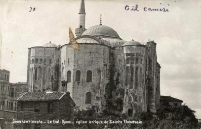 | Keywords: salt araştırma saltaraştırma salt research saltresearch salt online saltonline gül camii gülcamii hagia theodosia kilisesi hagiatheodosiakilisesi ayia theodosia ayiatheodosia doğu roma dönemi doğuromadönemi adile sultan halk kütüphanesi adilesultanhalkkütüphanesi bizans ayakapı i̇stanbul istanbul gül mosque gülmosque hagia theodosia church hagiatheodosiachurch byzantine period byzantineperiod byzantine adile sultan public library adilesultanpubliclibrary outdoor www.archives.saltresearch.org/R/-?func=dbin-jump-full&amp... Hagia Theodosia Church, (Gül Mosque today), located in Ayakapı in İstanbul, is a religious building from the Byzantine period. It was built during the 10th or 11th centuries. After the conquest of İstanbul, the building served local shipyards as a warehouse for shiping equipment. It was converted into a mosque in 1499 and a minaret was added to the building during the period of Selim II. After being destroyed by fire in 1633, the building was renovated. A further, more extensive restoration was undertaken on the order of Mahmud II (1808-1839). After being used as the Adile Sultan Public Library for some years, the building is empty today. SALT Research, Photography Archive Gül Camii olarak bilinen Hagia Theodosia Kilisesi Ayakapı’da yer alır. Doğu Roma döneminden kalma yapının 10. ya da 11. yüzyılda inşa edildiği düşünülmektedir. Kilise, İstanbul’un fethinden sonra bir süre, Haliç’teki tersanelerin malzeme deposu olarak kullanıldı. 1499’da camiye çevrildi, II. Selim zamanında minaresi eklendi. 1633’te geçirdiği bir yangının ardından onarılsa da, geniş kapsamlı onarımı II. Mahmut zamanında (1808-1839) gerçekleştirildi. Bir dönem Adile Sultan Halk Kütüphanesi olarak kullanılan yapı bugün atıl vaziyette durmaktadır. SALT Araştırma, Fotoğraf Arşivi www.archives.saltresearch.org/R/-?func=dbin-jump-full&amp... Hagia Theodosia Church, (Gül Mosque today), located in Ayakapı in İstanbul, is a religious building from the Byzantine period. It was built during the 10th or 11th centuries. After the conquest of İstanbul, the building served local shipyards as a warehouse for shiping equipment. It was converted into a mosque in 1499 and a minaret was added to the building during the period of Selim II. After being destroyed by fire in 1633, the building was renovated. A further, more extensive restoration was undertaken on the order of Mahmud II (1808-1839). After being used as the Adile Sultan Public Library for some years, the building is empty today. SALT Research, Photography Archive Gül Camii olarak bilinen Hagia Theodosia Kilisesi Ayakapı’da yer alır. Doğu Roma döneminden kalma yapının 10. ya da 11. yüzyılda inşa edildiği düşünülmektedir. Kilise, İstanbul’un fethinden sonra bir süre, Haliç’teki tersanelerin malzeme deposu olarak kullanıldı. 1499’da camiye çevrildi, II. Selim zamanında minaresi eklendi. 1633’te geçirdiği bir yangının ardından onarılsa da, geniş kapsamlı onarımı II. Mahmut zamanında (1808-1839) gerçekleştirildi. Bir dönem Adile Sultan Halk Kütüphanesi olarak kullanılan yapı bugün atıl vaziyette durmaktadır. SALT Araştırma, Fotoğraf Arşivi |