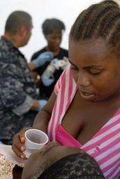 | Keywords: Haiti Relief efforts DVIDS250183.jpg en A Haitian woman gives water to a patient at the Hospital Cardinal de Legar in Leogane Haiti Feb 3 Sailors from Bataan Amphibious Relief Mission are providing medical care to people in Haiti in support of Operation Unified Response The multi-purpose amphibious assault landing ship USS Bataan and amphibious dock landing ships USS Carter Hall USS Fort McHenry and USS Gunston Hall are on station in Haiti as the Bataan Amphibious Relief Mission in support of Operation Unified Response a joint operation providing military support capabilities to civil authorities to help stabilize and improve the situation in Haiti following a 7 0 magnitude earthquake that devastated the island nation 2010-02-03 U S Navy photo by Petty Officer 1st Class Hendrick Dickson mass communication specialist https //www dvidshub net/image/250183 100203-N-+++++-299 2010-02-10 13 19 LEOGANE HT PD-USGov-Military-Navy USS Carter Hall LSD-50 Operation Unified Response Images from DoD uploaded by Fæ |