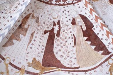 | Keywords: Hald 3 helgener.jpg Hald Kirke Kalkmaleri 3 helgener Petrus Martyr Olav den Hellige Sankt Barbara Hald Church Denmark Fresco 3 saints Peter of Verona Olaf of Norway Barbara own Own photo 2007-08 Gunnar Bach Pedersen PD Frescos in Hald Kirke Peter of Verona Frescos of Olaf II of Norway Paintings of Saint Barbara GunnarBach |