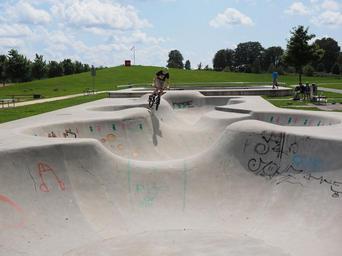 Keywords: halfpipe sport bike concrete stunts jump mountain bikers