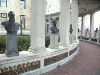 | Keywords: Hall of Fame for Great Americans shiny north jeh.jpg en Looking west in Hall of Fame after some of the labels have been polished From left Alexander Graham Bell Eli Whitney and Robert Fulton own Jim henderson 2010-12-16 40 51 32 4 N 73 54 49 8 W alt 0_source exif_heading WbS Cc-zero Hall of Fame for Great Americans Inventors from the United States Alexander Graham Bell Eli Whitney | ||||
