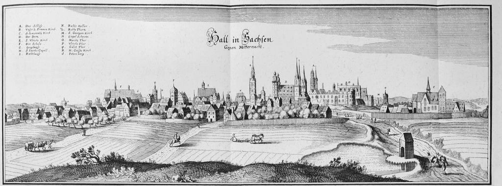 | Keywords: Hall in Sachsen (Merian) 1.jpg  Artwork creator Matthäus Merian Halle Saale Sachsen-Anhalt Deutschland von Süden b 1653 copper engraving object history exhibition history credit line de accession number Topographia Saxoniae Inferioris Frankfurt am Main 1653 PD-100 Engravings of Topographia Saxoniae Inferioris Historic views of Halle Saale |