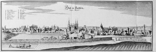 | Keywords: Hall in Sachsen (Merian) 3.jpg Artwork creator Matthäus Merian b 1653 copper engraving object history exhibition history credit line de accession number Topographia Saxoniae Inferioris Frankfurt am Main 1653 PD-100 Engravings of Topographia Saxoniae Inferioris Historic views of Halle Saale |