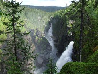Keywords: Hallingsafall.JPG 2006-07-13 own assumed Sjoge~commonswiki Waterfalls in Sweden Nature reserves of Strömsund Municipality July 2006 in Sweden 2006 in Strömsund Municipality Frostviken District