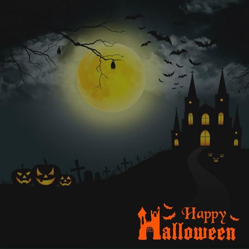 Keywords: halloween castle weird surreal atmosphere bat moon silhouette