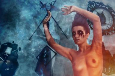 Keywords: halloween daemon mejk model girl succubus lips erotica person woman portrait breast sword rapier