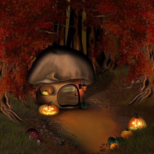 Keywords: halloween forest mushroom house forest lodge twilight home forest house imp history comic fairy tales males pumpkin autumn