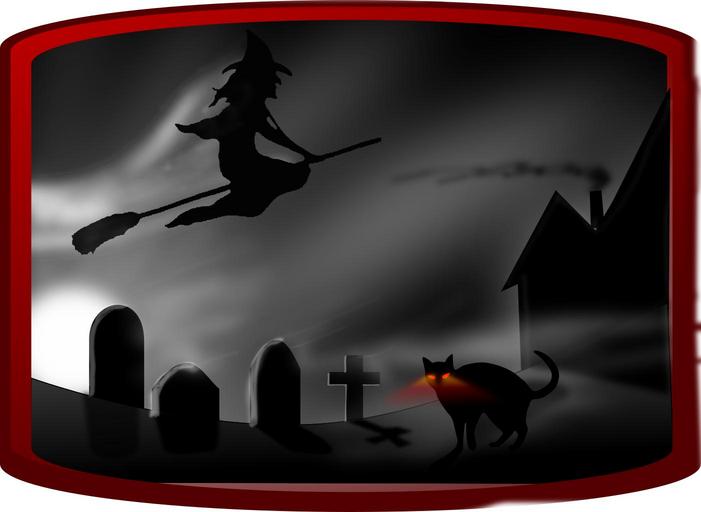 Keywords: halloween graveyard witch cat cemetery broom silhouette flying haunted black night