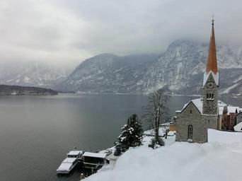 Keywords: hallstatt lake winter austria church unesco world heritage hallstättersee lake cold village salzburg holiday tourism worth a visit tradition