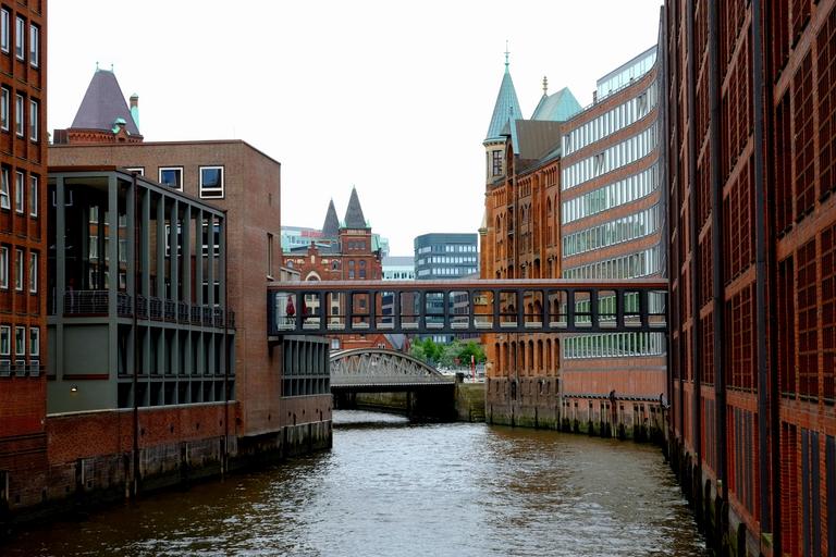 Keywords: hamburg channel building speicherstadt water architecture brick bridge harbour city homes world heritage city outdated industry waterways clinker old speicherstadt romantic port city