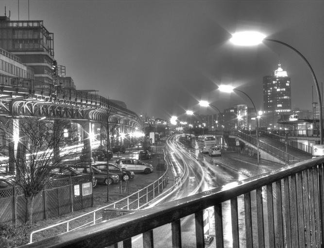 Keywords: hamburg germany night city lanterns black and white traffic